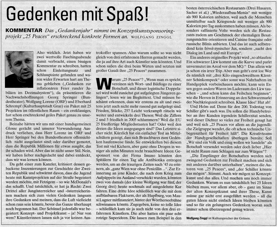 Presseschau: Kommentar von Wolfgang Zinggl im Falter 5/05 (2.Februar 2005)